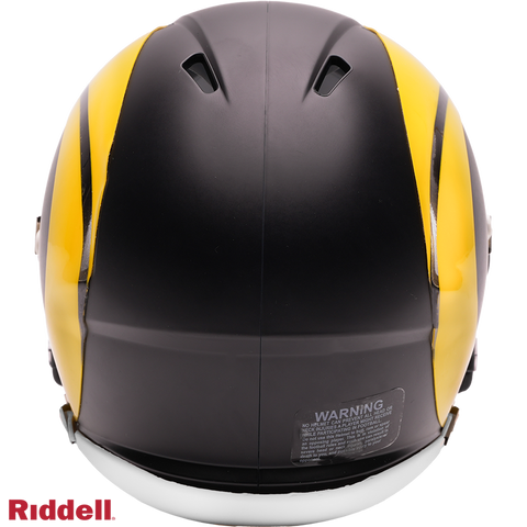 The Speed Mini Helmet is a half scale replica of one of the most popular new helmet introductions in Riddell's history. It's a must have for the serious collector. Includes interior padding and a 4-point chinstrap. Official colors and decals. Ideal for autographs. Approximately 5" tall. Made By Riddell